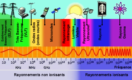 Le spectre des ondes électromagnétiques est découpé arbitrairement des rayons γ aux ondes radio :